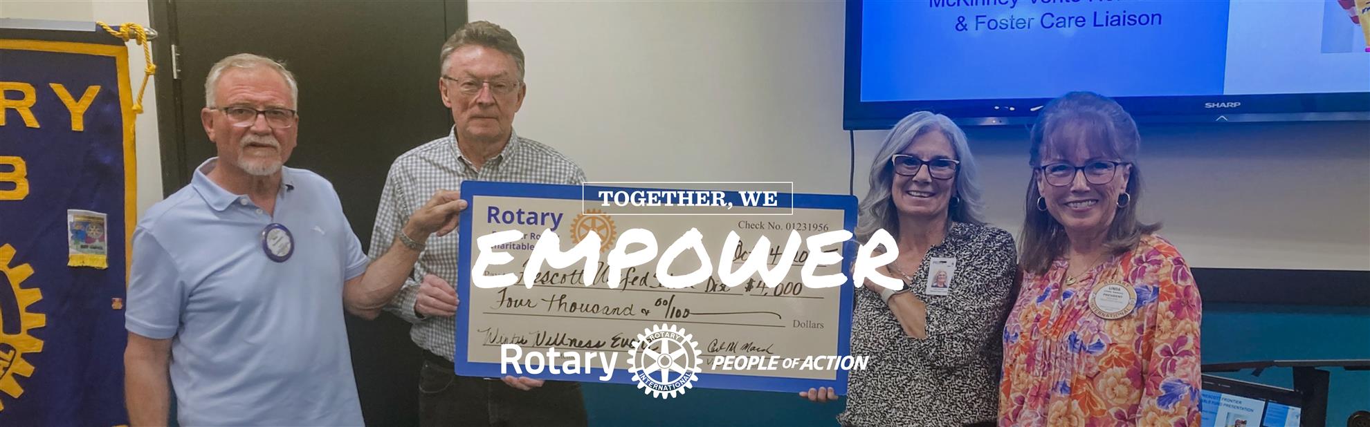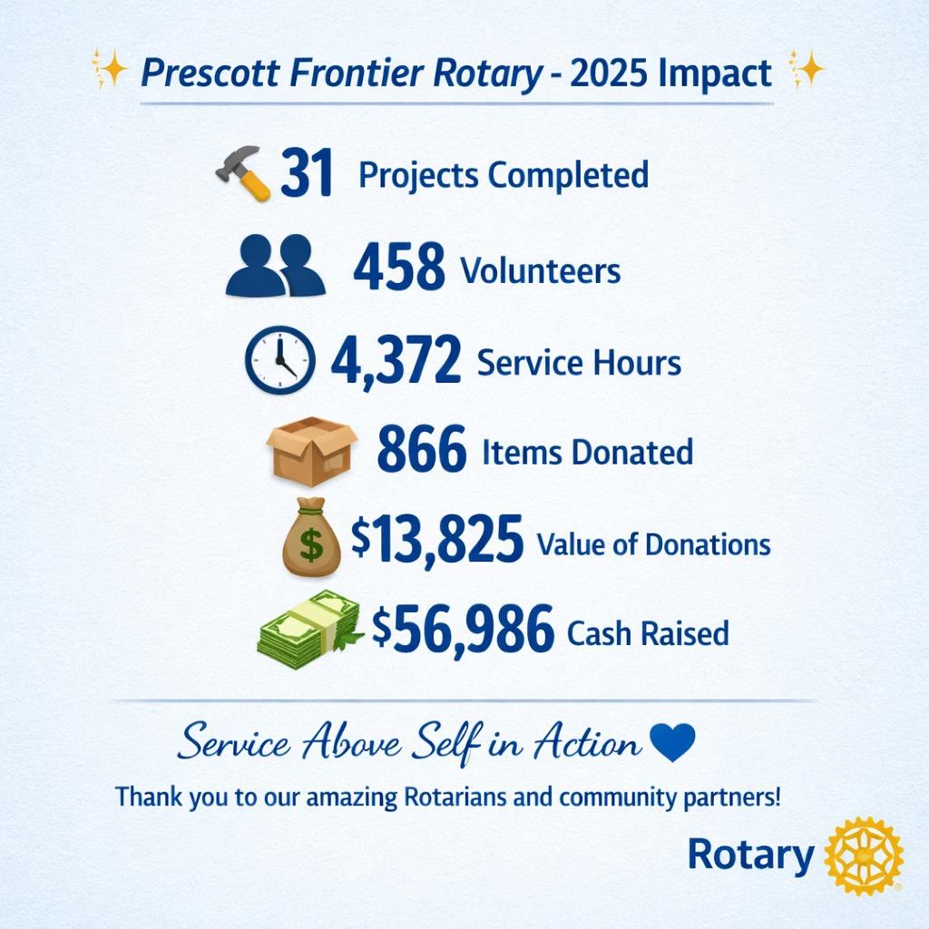 Hundreds of guests attended Prescott Frontier Rotary Club's 🍇Grapes 4 Good🍇 fundraiser on Sunday, September 28, 2025. The 19th annual special event was held at Watters Garden Center in Prescott. It featured tastings of a dozen different wines, catering by El Gato Azul and Torme restaurants, music by Mood Swing, live and silent auctions, and a raffle drawing. Many arrived with generous hearts and gave to the club's fund. The participants raised thousands of dollars, and all proceeds will benefit numerous charitable programs and service projects that support people in Prescott, surrounding communities, and worldwide. Thanks to all who attended and gave generously!
